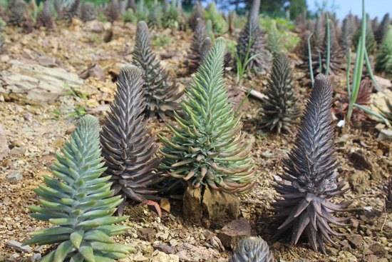 -밭이나 비닐하우스에서 재배되는 와송은 줄기가 굵고 키가 큽니다.