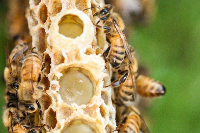 <왕유>라고도 불리는 로열젤리는 왕에게 바치는 음식물이라는 뜻으로 일벌들이 머리에 있는 특수 분비샘에서 분비해내는 크림 형태의 유기물질로 비타민과 영양이 풍부한 완전식품 중 하나입니다. 신맛과 단맛, 매운맛을 동시에 가지고 있으며, 여왕벌이 될 애벌레는 이 로열젤리만 먹고 사는데, 보통 일벌보다 3배나 크게 발육하고 수명도 30배나 길어 일생동안 300만 개의 알을 낳는다고 합니다. 로열젤리는 크림과 비슷한 백색으로 새콤하고 특수한 냄새가 나는데, 여러 가지 아미노산 효소 등이 들어 있으며, 비타민의 경우 종합 비타민제와 비길 정도로 다양하게 들어있다고 합니다.