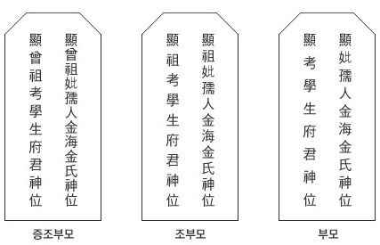 마지막에 신위라고 적는다. 각각을 설명하면 다음과 같다.