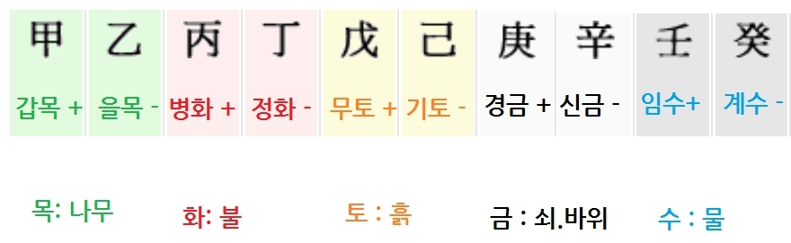 이 10개의 천간 즉 십간은 음양오행에서 나왔는데요.