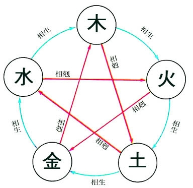 여기서 오행은 나무, 불, 흙, 쇠, 물 다섯 종류가 있습니다.